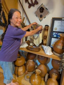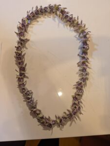サイさんがクラウンフラワーのLei をLakaに捧げていた!Mahalo nō e Sai!
