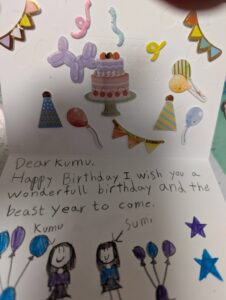 アイナちゃんとスミちゃん姉妹からの可愛いBirthday Card!大事にします!