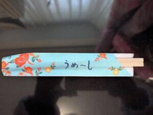 持ってきたお箸には”うめーし”と書いてあったのでPoliは本当に美味しい!と