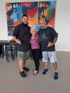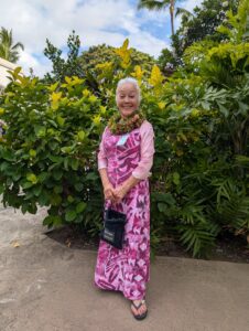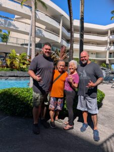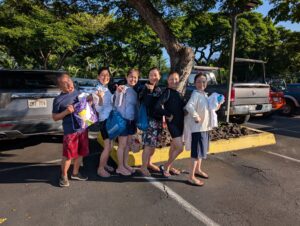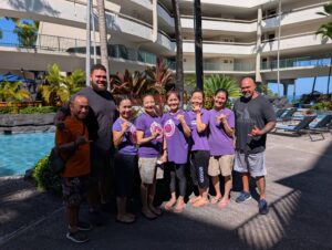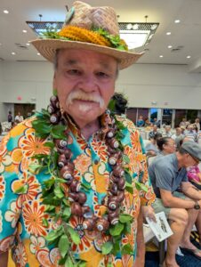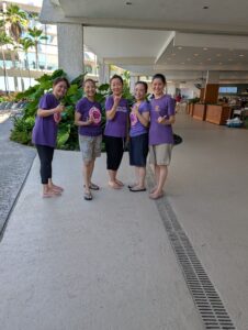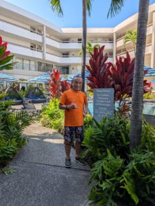 私のLeiはチームの皆から頂いたもの、Poli のLeiは故Kumu Rayから頂いた!