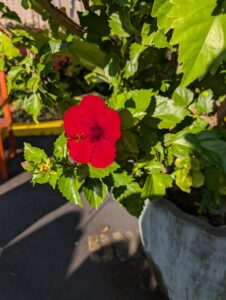みそぎを終えた後それぞれシャワーを使ったら、お稽古の開始!ハイビスカスも鮮やか!