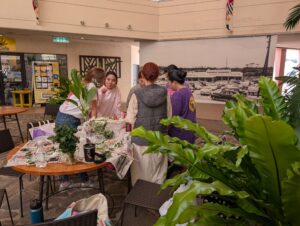 かたやハラウの中ではPoliがHula Kahikoの衣装の着付けの練習をしていました!