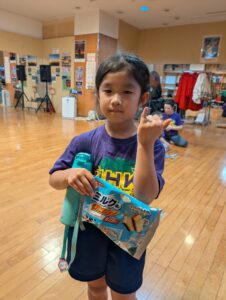 るように、チハルさんもおやつで~す!わ~い!フミコさん福岡土産、大きな
