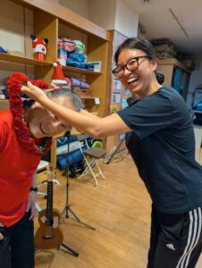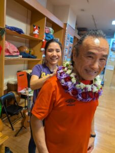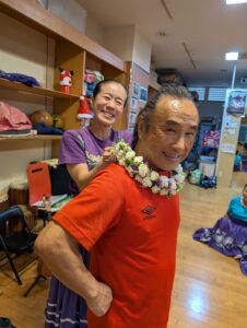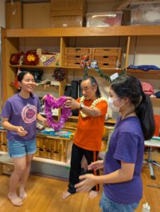 ビギナーの皆が心を込めて作ってくれたLeiはとても上手に作ってあって、私は