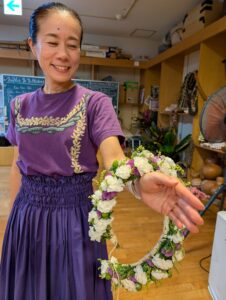 サワコさんは私に白いLeiʻāīをプレゼントしてくれた!サワコさんとLanakilaが