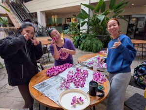 実は前日にフミコさん、サッチャン、ユカリさんがLeiを作っているのを発見して