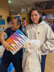 サッチャンのケーキとシノブさんが持っているのは、Keolaからのお歳暮!